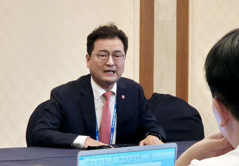 | ▲ 언론브리핑 하는 김의근 제주관광학회장 (제주=연합뉴스) 변지철 기자 = 11일 오후 제11회 제주국제크루즈포럼에 참석한 김의근 제주관광학회장이 언론브리핑을 하고 있다. 2024.7.11 |
