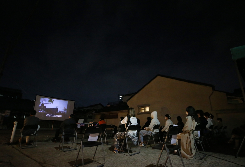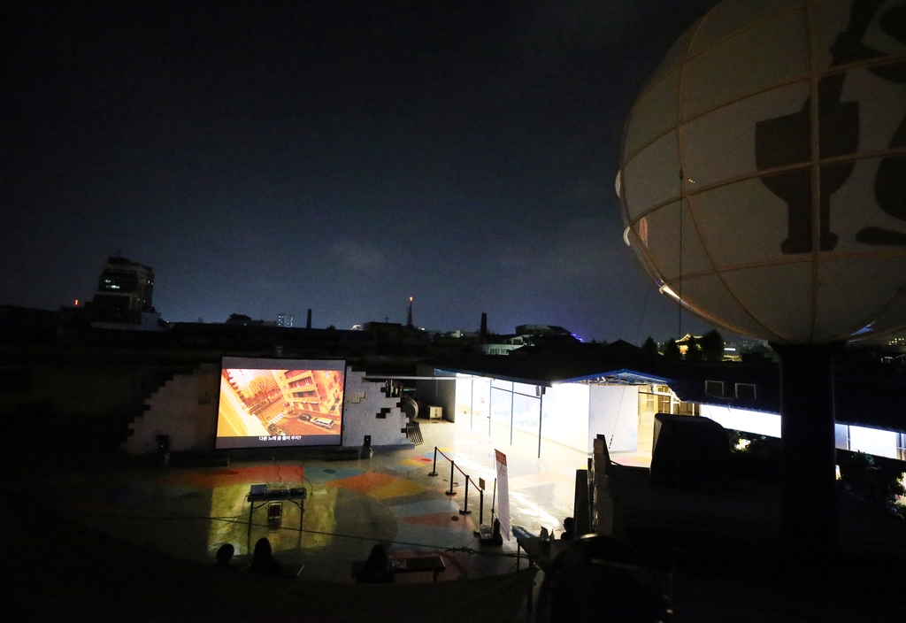 하늘 아래 펼쳐진 스크린 앞에 앉은 시민들은 고요한 분위기 속에 영화를 즐겼다.