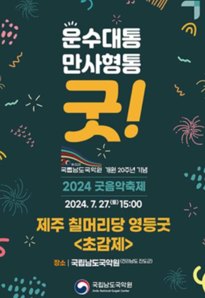 남도국악원 개원 20주년을 기념해 7월 한 달 동안 굿음악축제 '운수대통, 만사형통 굿!'이란 주제로 다양한 공연과 학술회의, 부대행사 등이 펼쳐지고 있다.