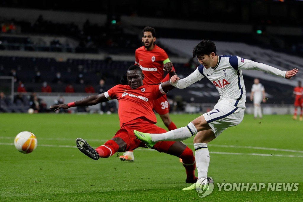 (서울=연합뉴스) 이영호 기자 = '손세이셔널' 손흥민이 후반 교체 선수로 출전한 잉글랜드 프로축구 프리미어리그 토트넘이 로열 앤트워프(벨기에)를 꺾고 유럽축구연맹(UEFA) 유로파리그 조별리그 선두로 32강에 진출했다.