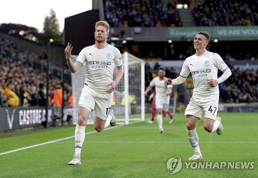 맨시티, 울브스 5-1 꺾고 EPL 2연패 눈앞…더브라위너 4골 폭격