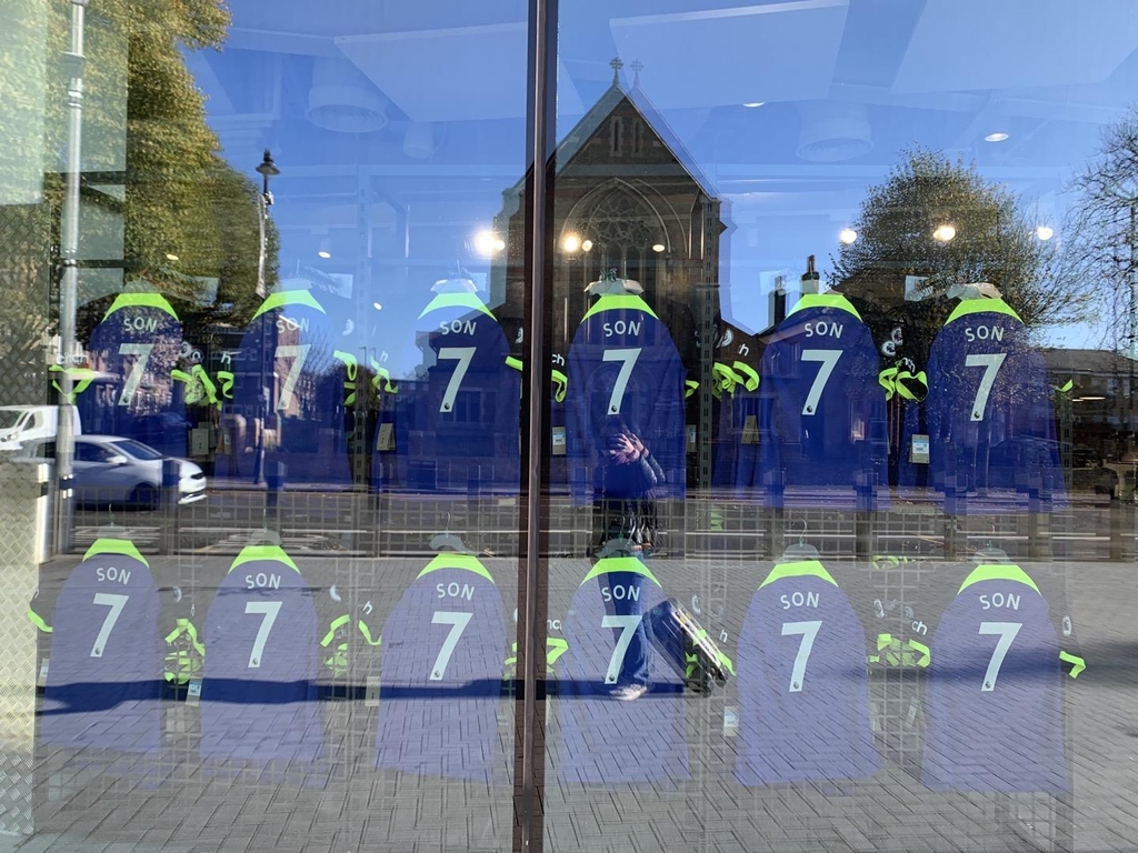 | ▲ 토트넘 홋스퍼 손흥민 유니폼 (런던=연합뉴스) 최윤정 특파원 = 4일(현지시간) 영국 런던 토트넘 홋스퍼 스타디움의 기념품 판매점 '토트넘 익스피리언스' 유리창 밖으로 손흥민 선수 유니폼이 보인다. 2022.11.13 merciel@yna.co.kr |