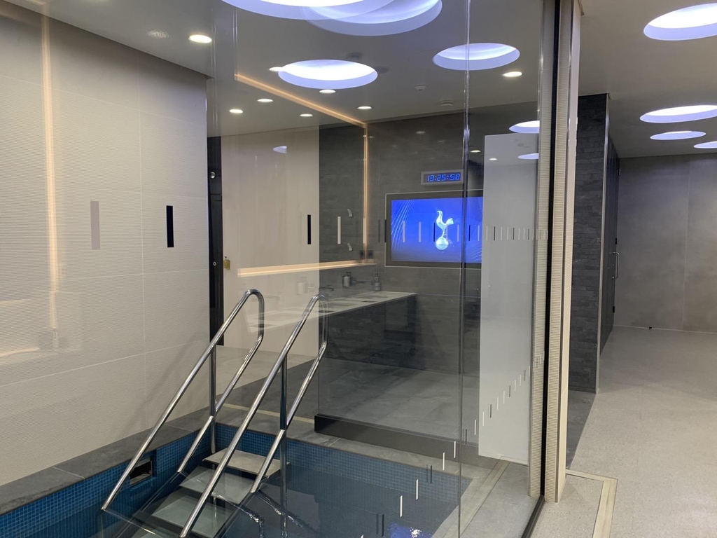 대기실 옆에는 선수 식당과 휴게실이 있고 복도 끝에는 공동 샤워실과 냉탕이 있다. 하틀리씨는 "경기 후 선수들이 이완된 근육 회복을 위해 10∼15분 가량 얼음물에 들어가 있는데 상당히 고통스러울 것"이라며 "냉탕 앞의 스크린은 오락용이 아니고 경기 연구용"이라고 설명했다.