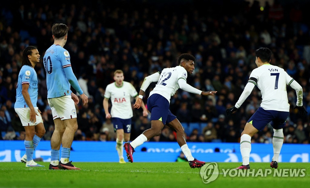 토트넘은 20일(한국시간) 영국 맨체스터의 에티하드 스타디움에서 열린 2022-2023시즌 잉글랜드 프로축구 프리미어리그(EPL) 7라운드 순연 경기에서 맨체스터 시티(맨시티)에 2-4로 패했다.