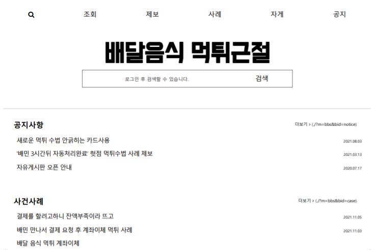 | ▲ 배달음식 '먹튀'가 기승을 부리면서 이런 사례를 제보·공유하는 사이트까지 등장했다. ['배달음식 먹튀근절' 사이트 캡처] |