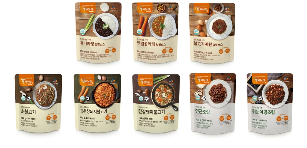 ▲ CJ프레시웨이[051500]가 케어푸드 브랜드 '헬씨누리'를 통해 고령친화식품 8종을 선보였다. 신제품은 균형 잡힌 영양, 소화 및 흡수 촉진, 저작 활동 용이 등 세 가지 핵심 요소를 고려해 개발한 것으로 덮밥소스 3종과 반찬 5종이다.