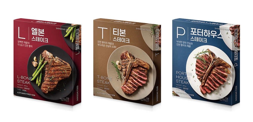 ▲ 신세계푸드[031440]가 엘본 스테이크, 티본 스테이크, 포터하우스 스테이크 등 '숏로인 스테이크' 3종을 출시했다. 신제품은 미국 초이스 등급 소고기의 숏로인에서 잘라낸 스테이크로, 집에서 조리하기 편한 1.4~2.3cm 두께로 소포장한 것이다.