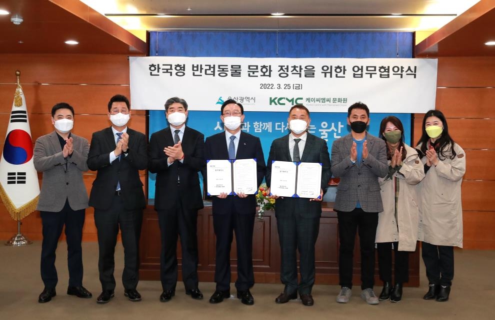 | ▲ 지난 25일 울산시와 KCMC문화원은 '한국형 반려동물 문화 정착을 위한 업무협약'을 맺었다. [울산시 제공. 재판매 및 DB 금지] |