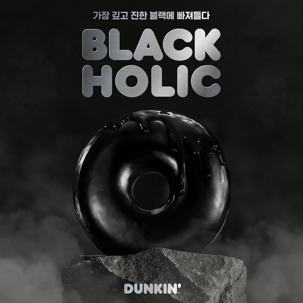 ▲ SPC그룹 계열사 비알코리아가 운영하는 던킨은 '블랫 도넛'을 출시했다. 세상에서 가장 어두운 검은색 '벤타블랙'에서 아이디어를 얻은 제품으로, 블랙 카카오[035720]로 반죽한 도넛에 블랙 초콜릿 코팅을 입힌 '블랙홀릭'과 쿠키 가루를 올려 바삭한 식감을 살린 '블랙홀릭 쿠키앤크림' 등 2종을 선보였다.