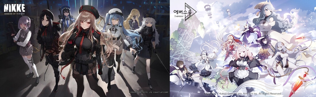 | ▲ '승리의 여신 니케'(왼쪽)와 '에버소울' [레벨인피니트·카카오게임즈 제공] |