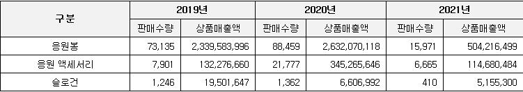 이에 따라 해당 상품 매출 역시 2019년 3천948만원에서 지난해 4억8천64만원으로 크게 늘어났다.