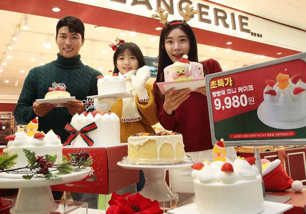 신세계푸드[031440]는 이마트[139480] 내 베이커리 매장에서 '빵빵덕 미니 생크림 케이크'를 9천980원에 판매한다. 시폰 위에 화이트 초콜릿·견과류 토핑을 올린 '몰캉몰캉 시폰 케이크'도 9천980원으로 출시했다.