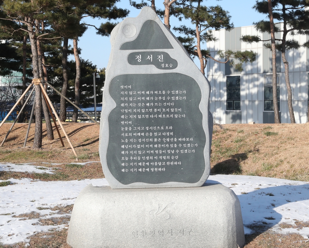 정호승 시인이 쓴 '정서진' 시비도 이곳에 설치돼 있다. 그는 이 시에서 '해는 지기 때문에 아름답고 찬란하다. 해는 지기 때문에 영원하다'고 했다.