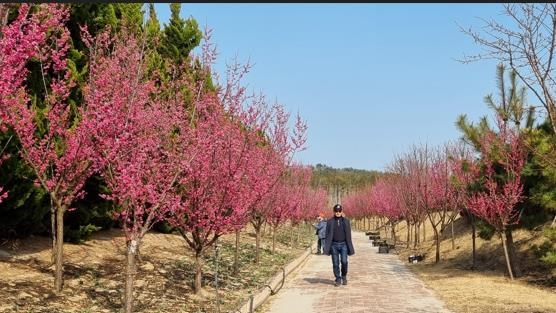 (신안=연합뉴스) 조근영 기자 = 축구장 5개를 합한 면적의 바닷가 정원인 전남 신안군 임자도 백억원(百億園) 정원의 조선홍매화가 이번 주말인 11~12일 만개할 것으로 보인다.