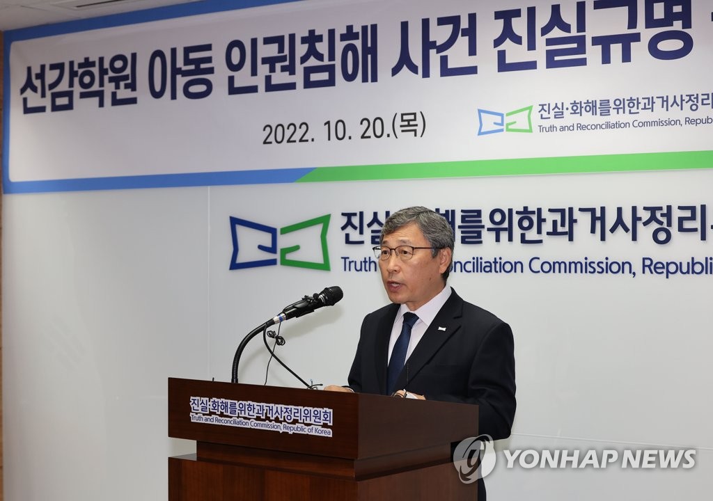 | ▲ 선감학원 아동 인권침해 사건 진실규명 결정 발표 (서울=연합뉴스) 박동주 기자 = 2022년 10월 20일 오전 서울 중구 진실·화해를위한과거사정리위원회에서 정근식 진실화해위원장이 선감학원 아동 인권침해 사건 진실규명 결정 발표를 하고 있다. [연합뉴스 자료사진] |