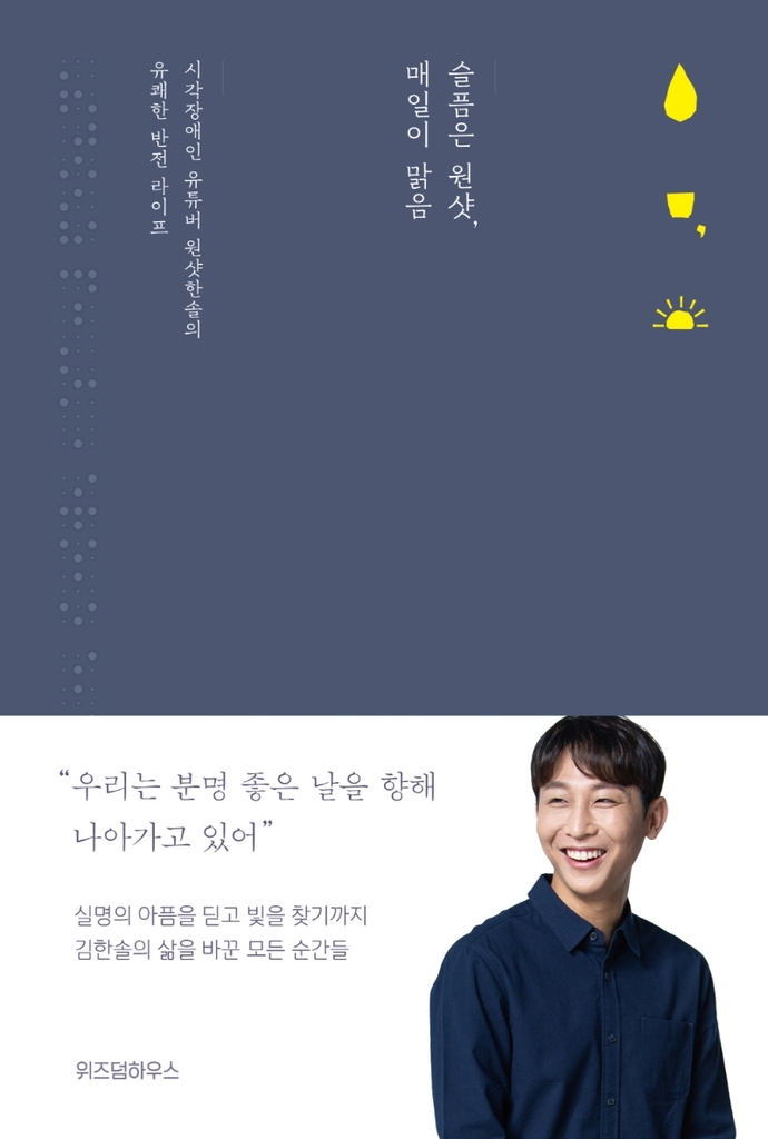 유튜브 채널 '원샷한솔' 운영자인 시각장애인 김한솔(29)은 '슬픔은 원샷, 매일이 맑음'(위즈덤하우스)에서 18살에 시력을 잃은 후 지금까지 자신의 인생이 어떻게 흘러왔는지를 고백한다. 먹구름 짙던 인생이 어떻게 맑아졌는지, 어떻게 미래를 꿈꾸게 됐는지 솔직하게 전한다.