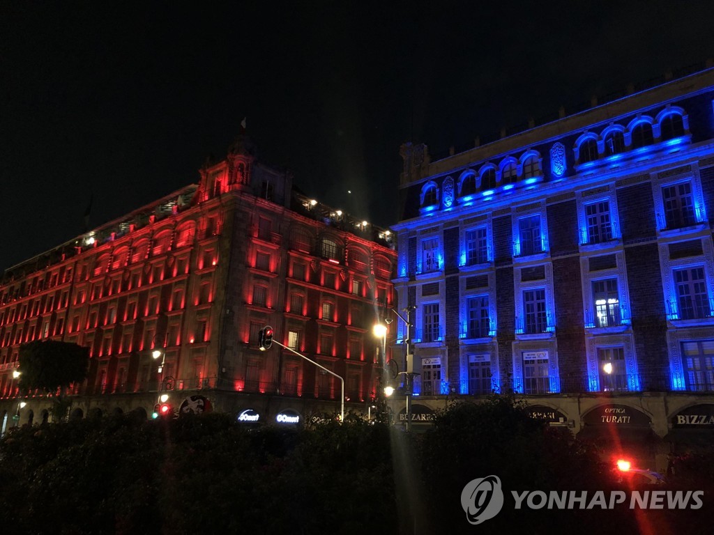 | ▲ 지난해 한국·멕시코 수교 60주년을 맞아 태극기 색깔 조명을 켠 멕시코시티 도심 건물 [연합뉴스 자료사진. 재판매 및 DB 금지] |