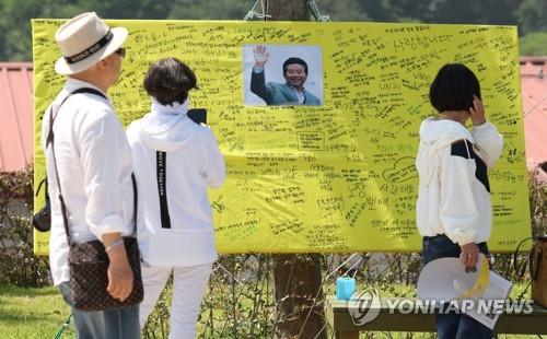 The ceremony, marking the 14th year since Roh's death, was held in the southeastern rural village of Bongha, Roh's hometown, to commemorate the liberal icon who took his own life in 2009 amid a sprawling corruption probe.