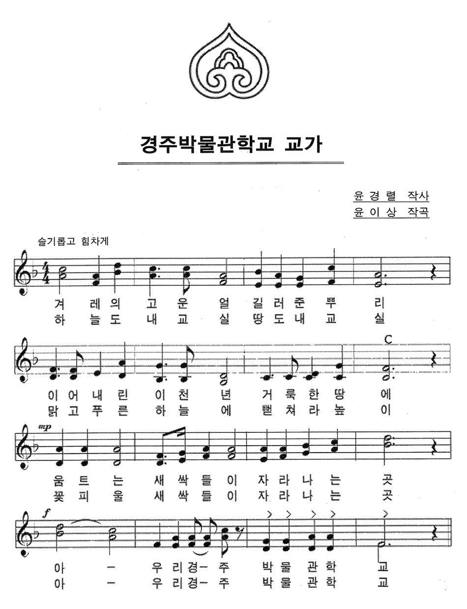 | ▲ 경주어린이박물관학교 교가 [국립경주박물관 제공. 재판매 및 DB 금지] |