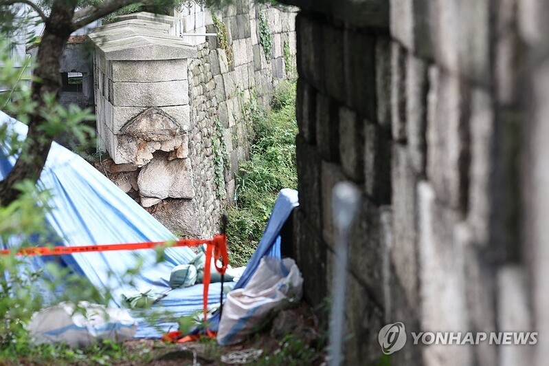 (서울=연합뉴스) 김정진 김예나 기자 = 연일 이어지는 장맛비에 유네스코(UNESCO) 세계유산 등재를 준비하던 서울 한양도성이 피해를 봤다.