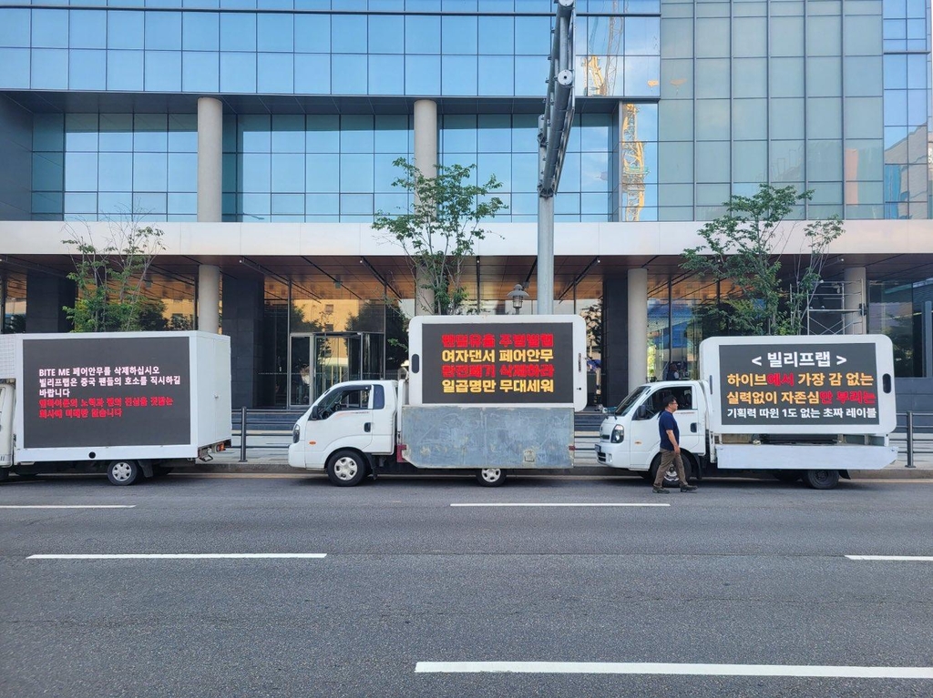 2020년 데뷔한 그룹 엔하이픈의 팬덤은 올해 발매한 신곡 '바이트 미'(Bite me)의 안무가 선정적이라며 하이브 사옥 등에서 트럭 시위를 진행했으며 데뷔 2년 차 아이브의 일부 팬덤도 멤버 장원영을 소속사가 혹사한다는 등의 이유로 시위를 전개했다.