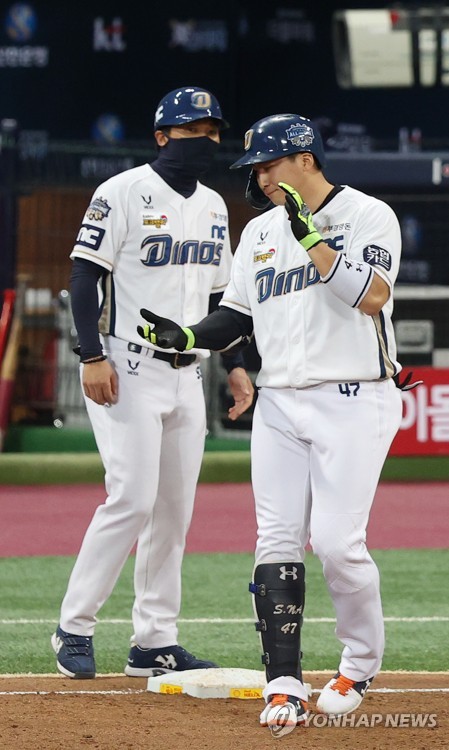 | ▲ 한국시리즈 6차전에서 안타 친 나성범 흐뭇하게 바라보는 이종욱 코치 [연합뉴스 자료사진] |