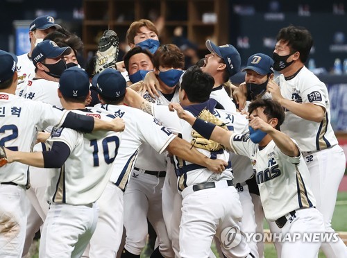 원종현이 삼진으로 경기를 끝내자 NC 선수들은 일제히 마운드로 달려와 감격의 포옹을 나누며 우승의 기쁨을 나눴다.