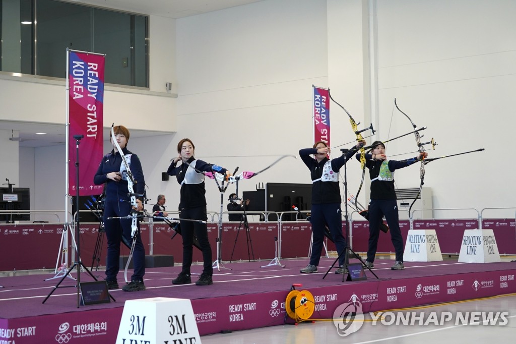 | ▲ In this Feb. 23, 2021, file photo provided by the Korea Archery Association, South Korean archers shoot arrows at the National Training Center in Jincheon, 90 kilometers south of Seoul. (PHOTO NOT FOR SALE) (Yonhap) |