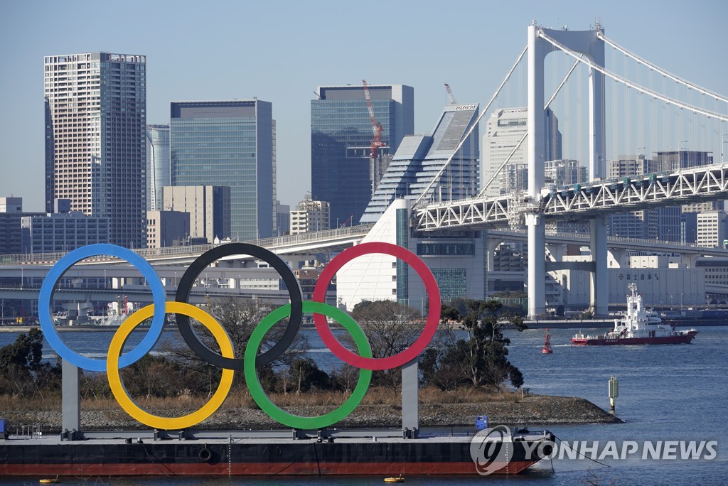 | ▲ This EPA file photo from Jan. 13, 2021, shows Olympic Rings at Odaiba Marine Park in Tokyo. (Yonhap) |