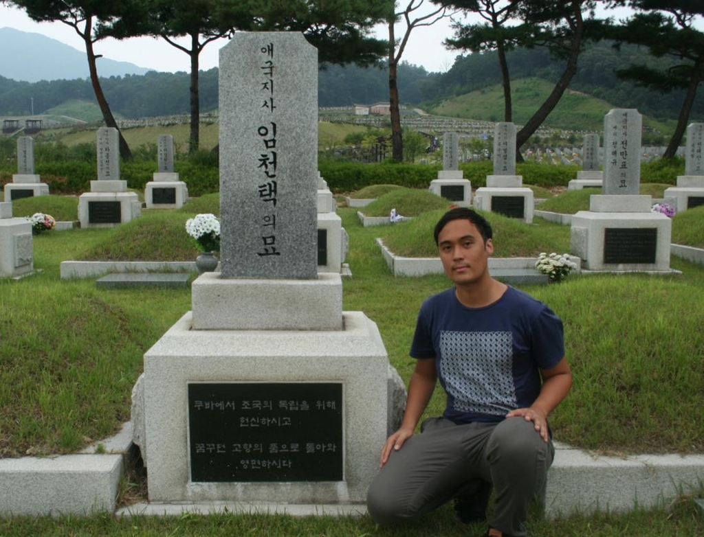 | ▲ 독립운동가 임천택 선생의 쿠바 후손 임대한 (멕시코시티=연합뉴스) 쿠바에서 활동한 독립운동가 임천택 (1903∼1985) 선생의 증손자 임대한(25) 씨. 사진은 2019년 방한 당시 찾은 대전 현충원의 증조부 묘. 2021.3.29. [임대한 씨 제공] |