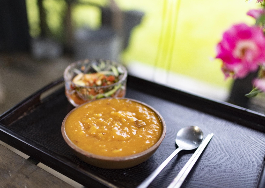 | ▲ 아침 식사로 나온 호박죽 [사진/성연재 기자] |