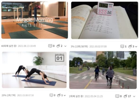 | ▲ 휴넷이 운영하는 성장관리 앱 '그로우' 내 루틴 인증 사례 [휴넷 제공. 재판매 및 DB 금지] |