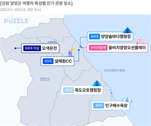 ▲ 양양 여행자 특성별 인기 관광 장소 [SK텔레콤 지오비전 퍼즐 제공. 재판매 및 DB 금지]