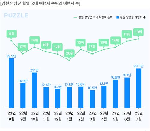 ▲ 양양 월별 여행지 순위와 여행자 수 [SK텔레콤 지오비전 퍼즐 제공. 재판매 및 DB 금지]
