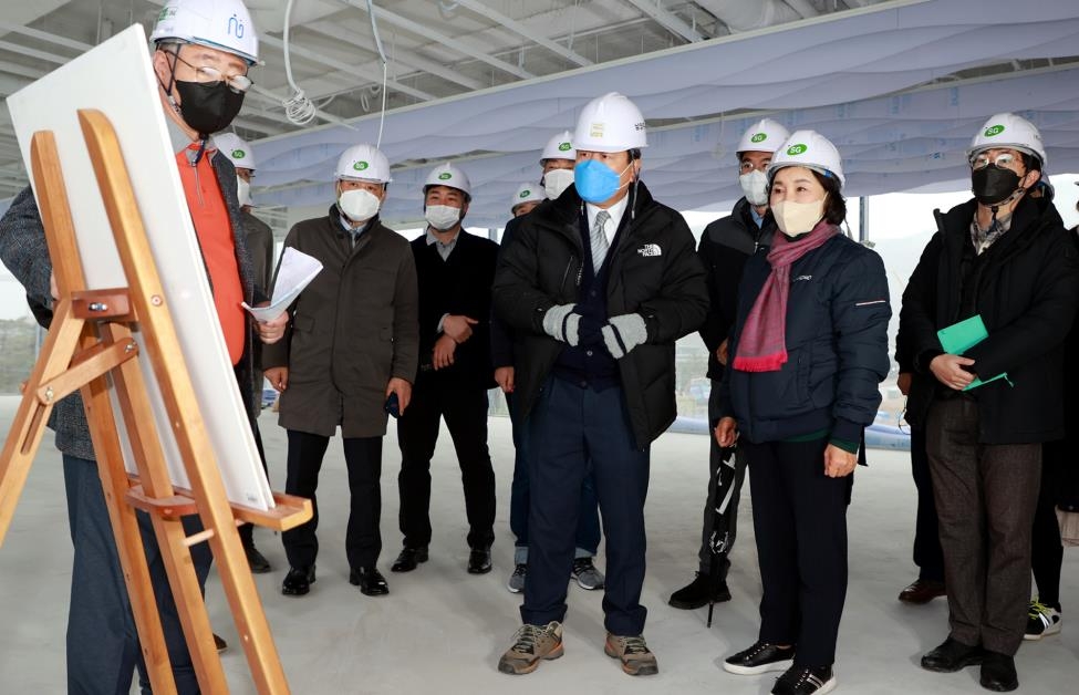 | ▲ 남양주시 청소년 전용 공간 '펀 그라운드' 조성 (남양주=연합뉴스) 조광한 경기 남양주시장이 청소년 전용 복합 문화·힐링 공간인 '펀 그라운드' 건설 현장을 둘러보고 있다. 2022.1.9 [남양주시 제공. 재판매 및 DB 금지] |