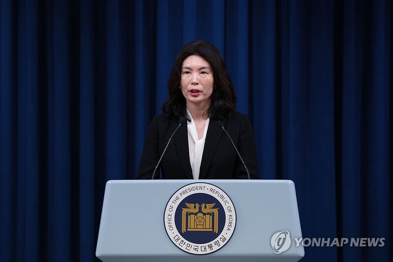 | ▲ You Hye-mi, the newly appointed senior presidential secretary for low birth rate issues, speaks during a press briefing at the presidential office in Seoul on July 25, 2024. (Yonhap) |