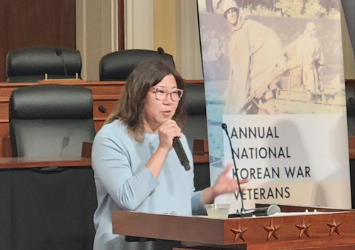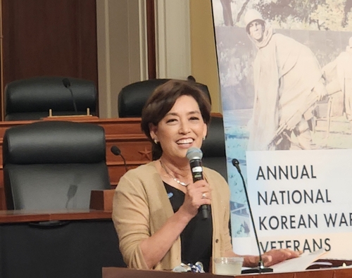 | ▲ Rep. Young Kim (R-CA) speaks during the 17th annual National Korean War Veterans Armistice Day commemoration in Washington on July 24, 2024. (Yonhap) |