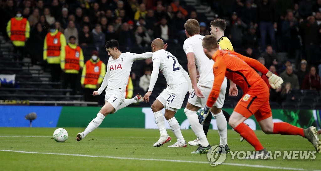 손흥민은 5일(한국시간) 영국 런던의 토트넘 홋스퍼 스타디움에서 열린 피테서(네덜란드)와의 2021-2022 유럽축구연맹(UEFA) 유로파 콘퍼런스리그 조별리그 G조 4차전 홈 경기에서 전반 15분 선제골을 터뜨렸다.