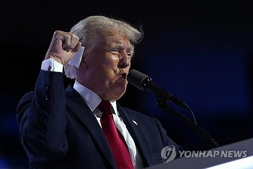 | ▲ Former U.S. President Donald Trump gives his acceptance speech during the Republican National Convention at the Fiserv Forum in Milwaukee, Wisconsin, on July 18, 2024, in this photo released by Reuters. (Yonhap) |