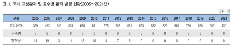 최근 국내 발생 보고는 없지만, 해외여행과 반려동물 사육 인구의 증가 추세를 보면 한국도 안전하다고만 볼 수는 없는 상황이다.