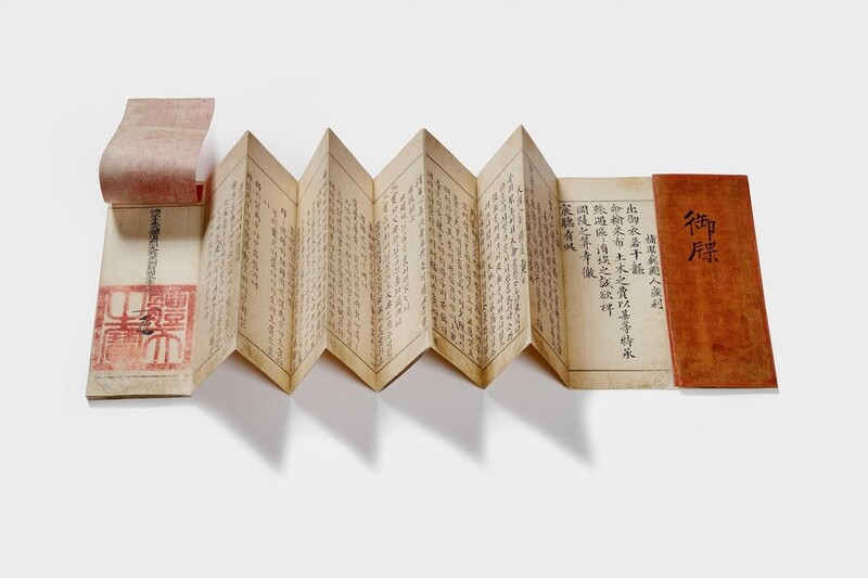 | ▲ 국보 '평창 상원사 중창권선문' 1464년에 승려 신미 등이 조선 세조를 위해 상원사 중창을 발원한 내용이 담긴 권선문 [월정사성보박물관 제공. 재판매 및 DB 금지] |