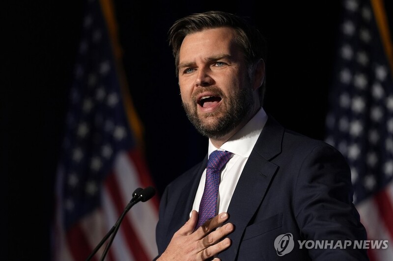 | ▲ Republican vice presidential candidate Sen. J.D. Vance speaks during Faith & Freedom Coalition's God & Country Breakfast, on July 18, 2024, in Milwaukee, Wisconsin in this photo released by the Associated Press. (Yonhap) |