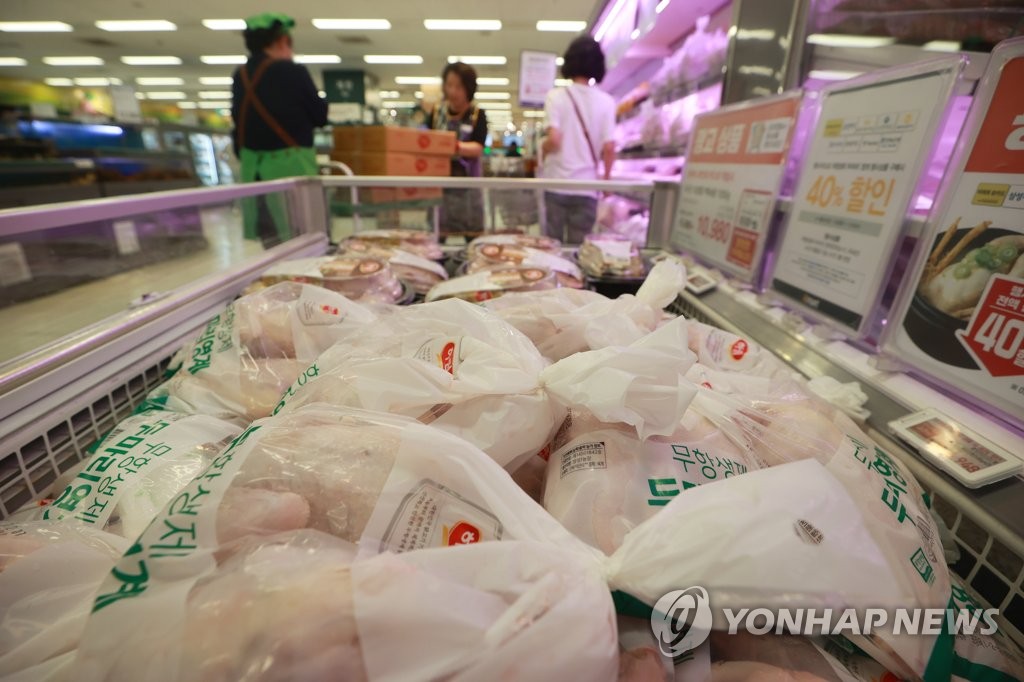| ▲ 오늘 초복…닭·오리고기 1년 전보다 비싸다 (서울=연합뉴스) 진연수 기자 = 초복을 맞아 보양식을 준비하는 가정의 부담이 1년 전 보다 커지게 됐다. 대표적인 보양식인 삼계탕, 백숙 등에 들어가는 닭고기의 경우 1년 전보다 가격이 10% 이상 상승했다. 축산물품질평가원 축산유통정보에 따르면 전날 기준 ㎏당 닭고기 소매가격은 6천364원으로 1년 전(7월 11일) 5천682원과 비교해 12.0% 올랐다. 사진은 11일 서울 시내 한 대형마트에 진열된 닭고기. 2023.7.11 jin90@yna.co.kr |