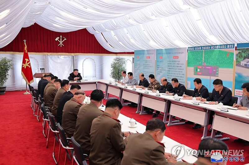 Kim visited a construction site for an offshore fish farm in the coastal city in South Hamgyong Province on Monday and presided over a meeting where developing the envisioned farm "into a new fine model of shallow-sea culture" was discussed, according to the Korean Central News Agency (KCNA).