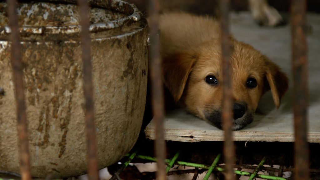영상에는 불법으로 운영되는 농장에서 치우지 않은 분변이 우리 바닥에 깔려있고, 개가 먹을 수 없는 양파, 파 등이 섞인 음식물쓰레기를 사료로 주는 현실이 드러난다. 상업 도살장에서 살아있는 개를 30초 넘게 전기로 감전시켜 죽이는 장면도 담겼다.
