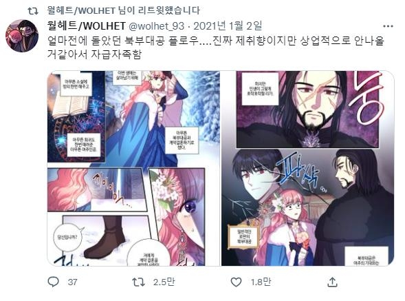 | ▲ 월헤트 작가가 SNS에 올렸던 '아무튼 로판 맞습니다'의 원형 만화 [작가 트위터 갈무리] |
