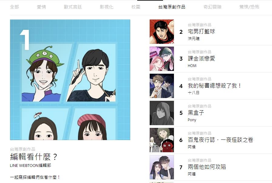 | ▲ 대만 라인웹툰의 현지 인기작 순위 [라인웹툰 갈무리] |