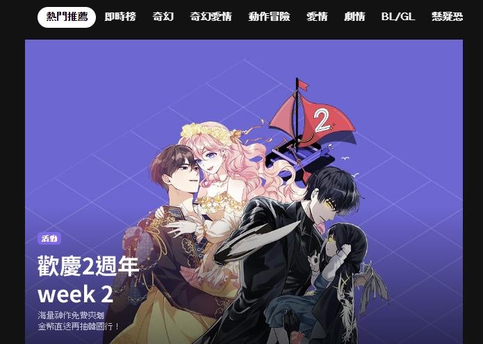 | ▲ 런칭 2주년을 맞은 카카오웹툰 대만 서비스 [카카오웹툰 갈무리] |