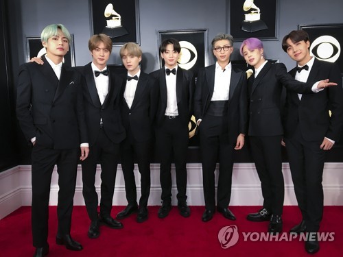 ▲ 지난해 초 제61회 그래미 어워즈 레드카펫 선 방탄소년단 [빅히트 엔터테인먼트 제공]