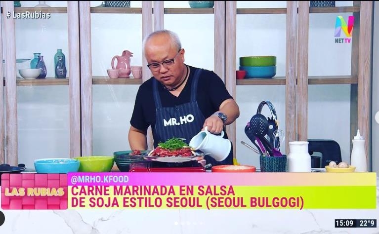 | ▲ 아르헨티나 현지 방송에서 불고기 선보이는 오중희 씨 [미스터호 인스타그램] |